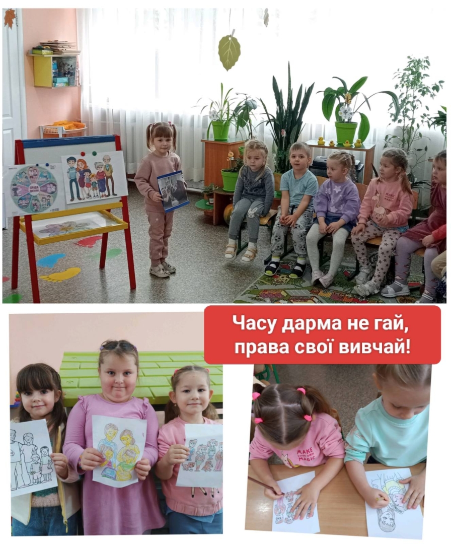Педагогічний колектив успішно реалізував заплановані заходи, інтегруючи складні правові поняття у доступні та захоплюючі форми: діти середніх та старших груп закріпили знання про свої основні права на ім'я, сім'ю, любов, рівність та освіту на заняттях «Я маю ім’я — воно тільки моє», «Я і ти — ми різні, але рівні» та «Садочок — мій другий дім». Набуті знання закріплювали у сюжетно-рольових іграх («Сім’я», «Лікарня», «Ми – кухарі»), а також під час дидактичних ігор («Чарівний мішечок прав», «Право чи обов’язок?», «Світлофор прав»). У межах заходу «Листи дружби» діти груп 2, 3, 11, 12, 13 обмінювалися малюнками, втілюючи своє право на спілкування та дружбу. Діти знайомилися з візуалізацією Конвенції ООН про права дитини та переглядали навчальні мультфільми, як-от «Мультик про права дитини». Надзвичайно важливим стало опрацювання серії відеороликів, присвячених запобіганню насильству та жорстокому поводженню («Кричи та біжи», «Небезпечні дотики»).
